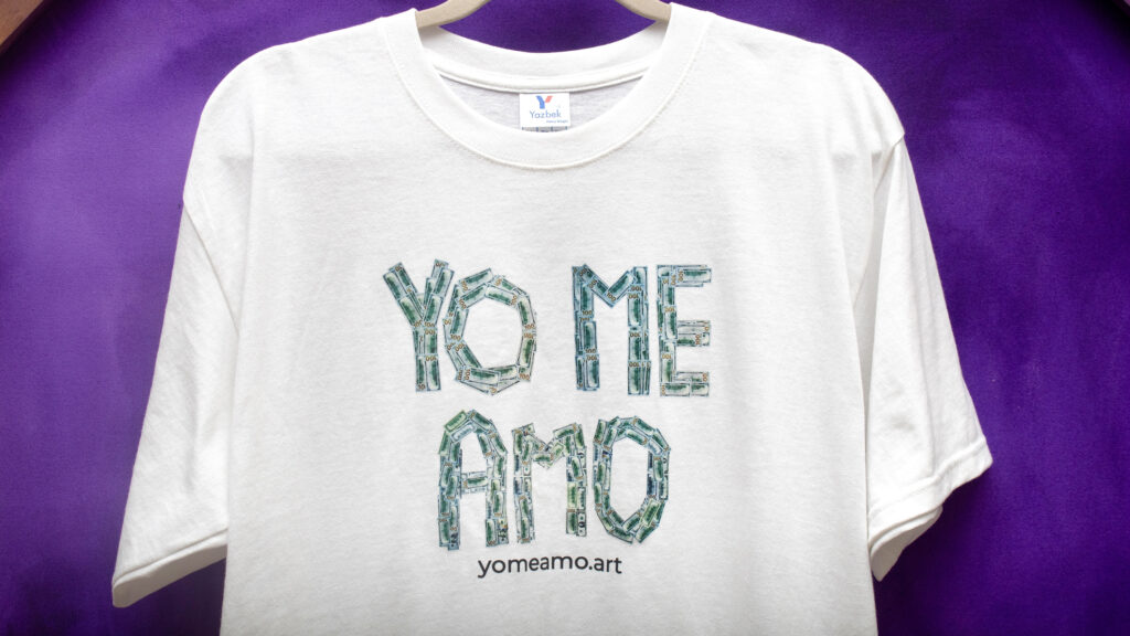 La campaña visual de YO ME AMO utiliza el formato de merchandising como herramienta conceptual y artística. Por ejemplo, el uso de un billete de $100 — representando prosperidad y abundancia — se convierte en objeto cotidiano de reprogramación visual.